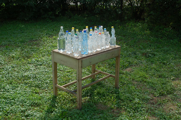 Plastic flessen worden onder grote spanning in hun vorm geperst. Door de flessen te verhitten verliezen ze die spanning. Elke fles wordt hiermee anders van vorm. Met deze ingreep wordt er van een serieproduct een uniek product gemaakt. In het uiteindelijke werk hangen de flessen aan een driepoot ,die ook gebruikt wordt om de pan met het nationale gerecht “goulash” aan te hangen, en zijn ze gevuld met water.Tijdens de presentatie konden de bewoners van het dorp een nieuw gevormde fles uitzoeken en meenemen met zgn. spanningsloos water.